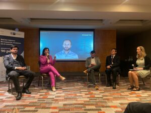 Posteriormente, Ana Lía participó en un panel junto a Nicolás Carrasco de BASF, Juan Carlos Araneda del Coordinador Eléctrico Nacional y desde Alemania, Jonas Lotze de Transnet BW, donde se discutieron las posibles