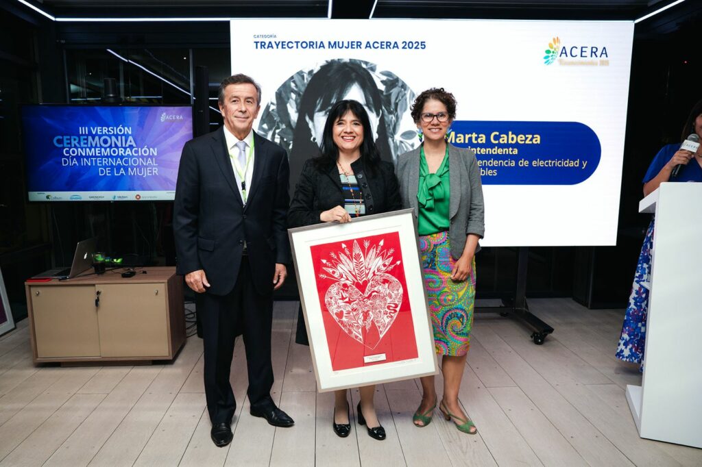 Santiago, 7 de marzo de 2025.– La Asociación Chilena de Energías Renovables y Almacenamiento, ACERA A.G., realizó la tercera edición de los Reconocimientos Mujer ACERA 2025, un evento que, además de visibilizar el talento y liderazgo de las mujeres en el ámbito energético, se ha convertido en un espacio para fortalecer su presencia en todos los niveles de la industria. Esta iniciativa no solo reconoce trayectorias y logros individuales, sino que también impulsa el desarrollo de políticas y acciones concretas que fomenten la igualdad de oportunidades, promoviendo un sector más diverso, inclusivo y equitativo. Con la presencia de autoridades de gobierno de Energía y Medioambiente y una gran asistencia de socios y colaboradores de ACERA, el evento reafirmó la importancia de seguir promoviendo espacios de reconocimiento e inclusión en la industria.