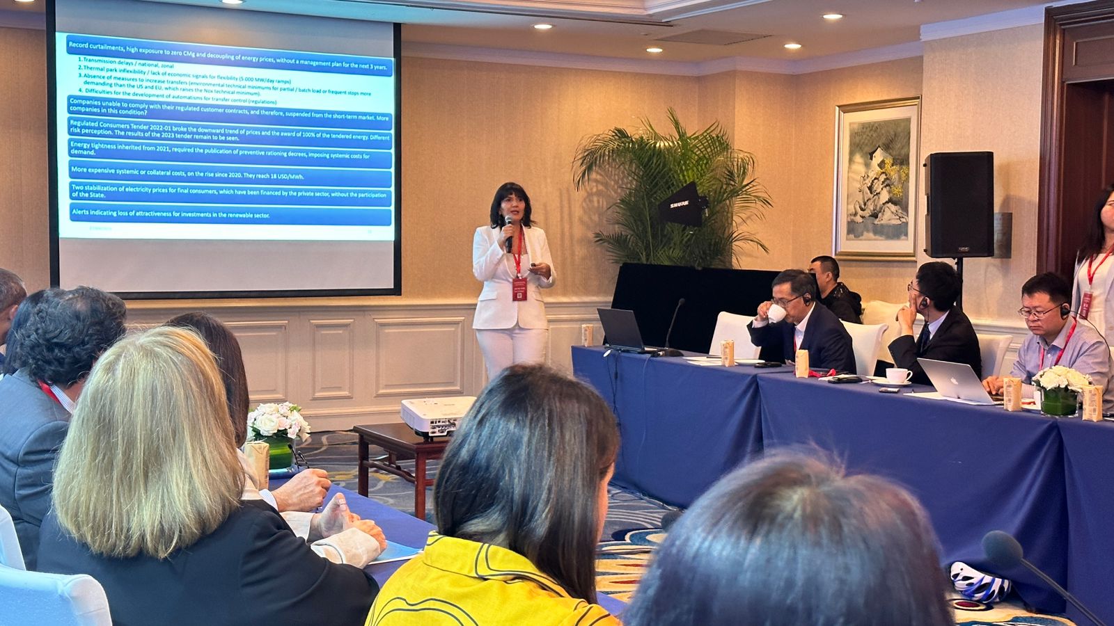 Santiago, Chile, 27 de septiembre de 2023. La Directora Ejecutiva de ACERA, Ana Lía Rojas, expuso sobre el mercado eléctrico chileno y oportunidades para la descarbonización, en el “Latam China Day” de la “6ta Conferencia Interconexión Energética Global (GEI) 2023”, celebrado ayer en la República Popular de China. La economista chilena fue invitada por GEIDCO y OLADE, organizadores de este importante foro de diálogo técnico internacional, a fin de promover los avances y desafíos del sector de energías renovables de Chile.La conferencia tuvo como máxima representante del Gobierno de Chile a la Superintendenta de Electricidad y Combustibles, Marta Cabeza y a profesionales de la Comisión Nacional de Energía y del Coordinador Eléctrico Nacional. En la ocasión, participaron también las delegaciones de Uruguay y Argentina, encabezadas por el Viceministro de Energía y la Secretaría de Energía, respectivamente.La Directora Ejecutiva de ACERA centró su presentación en el rol que China cumple como agente desarrollador y proveedor de soluciones tecnológicas para resolver desafíos de balance de red y de aprovechamiento de redes de transmisión existentes, que ya se utilizan en el gigante asiático, y que permitirían acelerar la penetración de energías renovables en la red eléctrica.