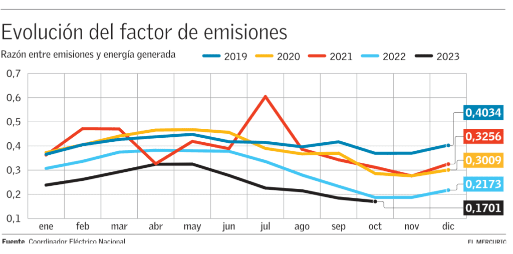 infografía), indicador que se logra de una razón entre las emisiones del sistema y la energía generada. La principal razón de esta tendencia es la cada vez mayor p
