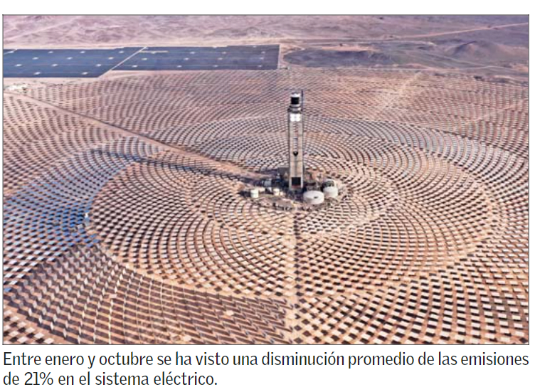 Una importante baja en las emisiones de carbono es la que se está viendo en el sistema eléctrico nacional, según cifras del Coordinador Eléctrico Nacional.