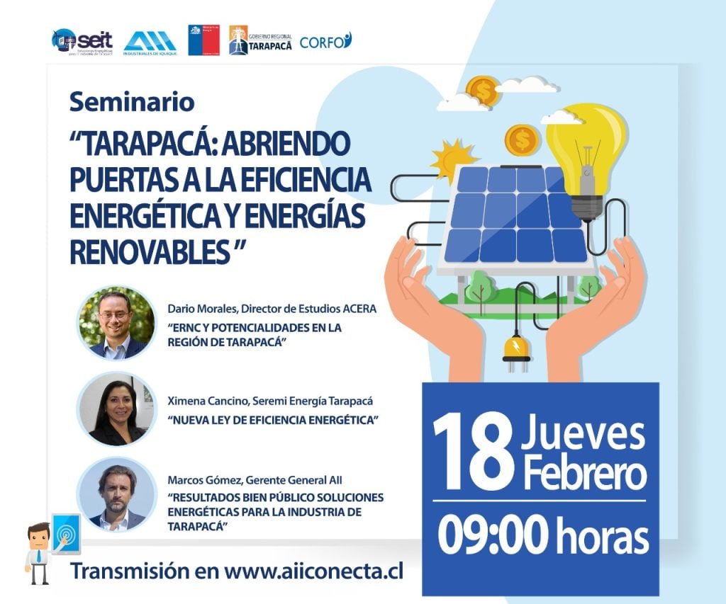 18feb9:00 AM11:00 AMSeminario "Tarapacá: Abriendo puertas a la eficiencia energética y energías renovables"