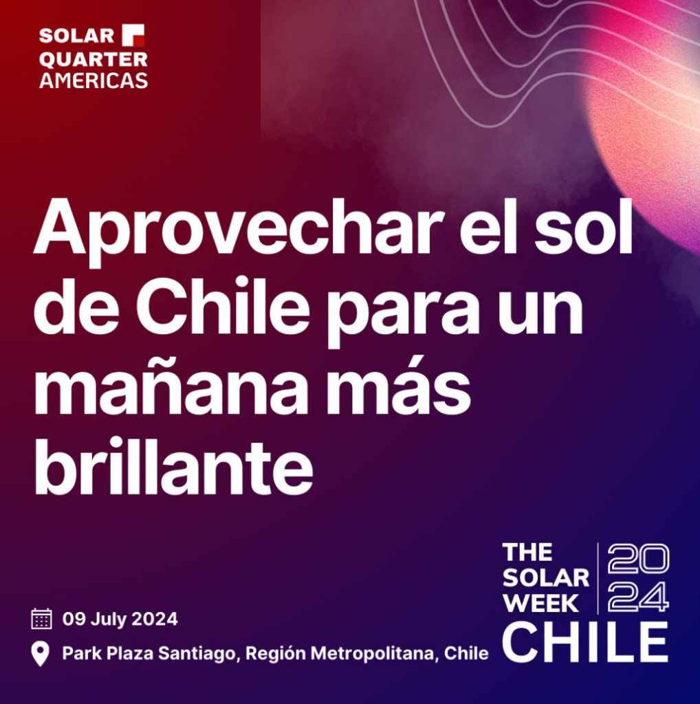 Chile, dotado de abundantes recursos solares y un fuerte compromiso con la energía sostenible, se ha convertido en un actor clave en el ámbito solar a nivel global. En julio, llega la segunda edición de The Solar Week Chile 2024, organizado por SolarQuarter Americas.